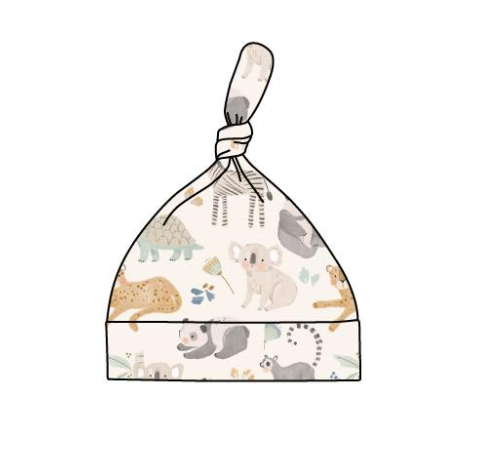 Bird & Bean® - Baby Bamboo Knotted Baby Gown + Hat Gift Set - Safari Friend